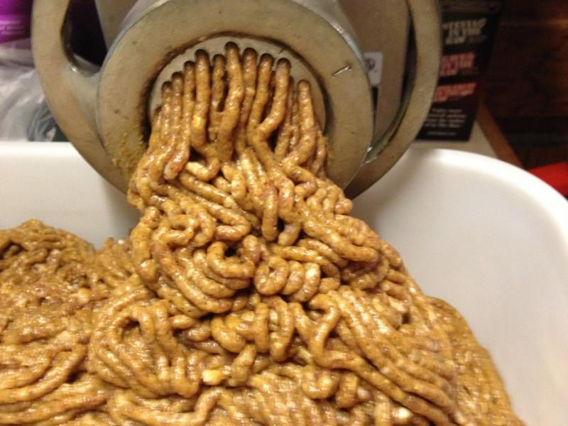It’s getting very close to Deer Hunting Season and that mean’s thoughts of venison sausage are growing within my taste buds. I’m all out of venison, but I did pick up some pork butts and some beef to make some Chili Dogs the other day. Finished them off today. 25 pounds of which some will go to deer camp. Here are some pics of the last two day’s making these spicy sausages. Check out my Homemade Sausage Page for this recipe and lot’s more.