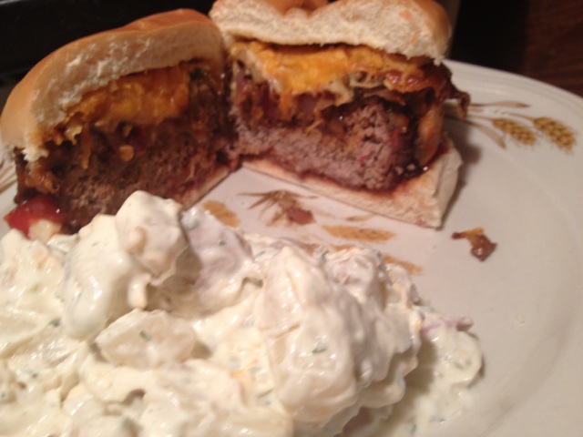 This is becoming my favorite way to make a burger. I don’t need any tomato slices or lettuce for toppings here. Everything I want is in the burger!! Check out how I make this burger in the Smokin Hot Page!!