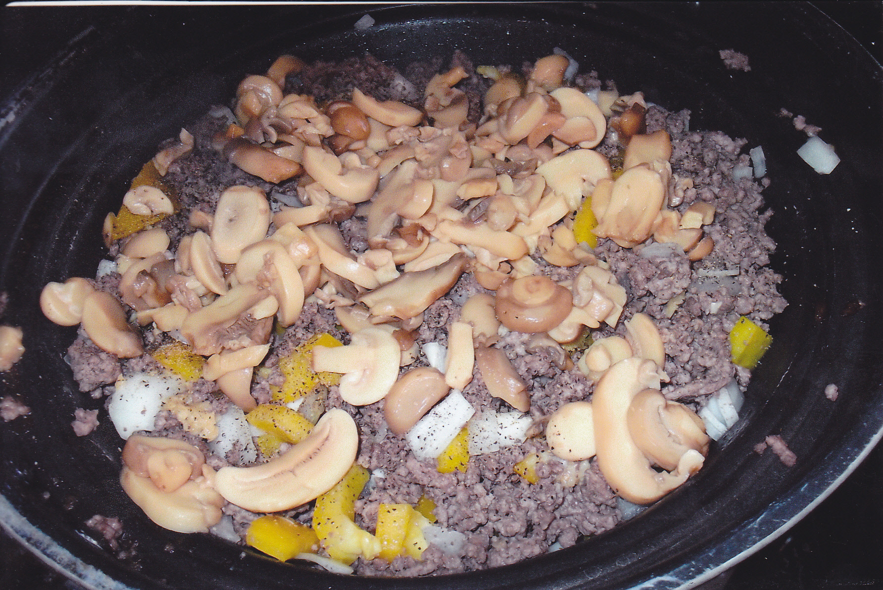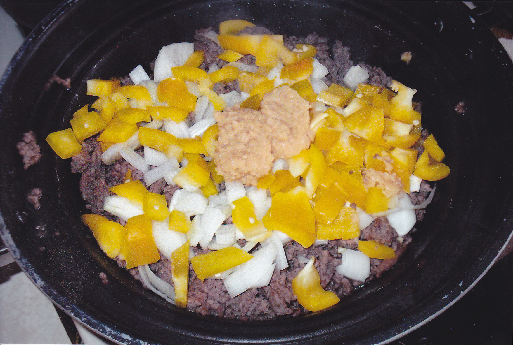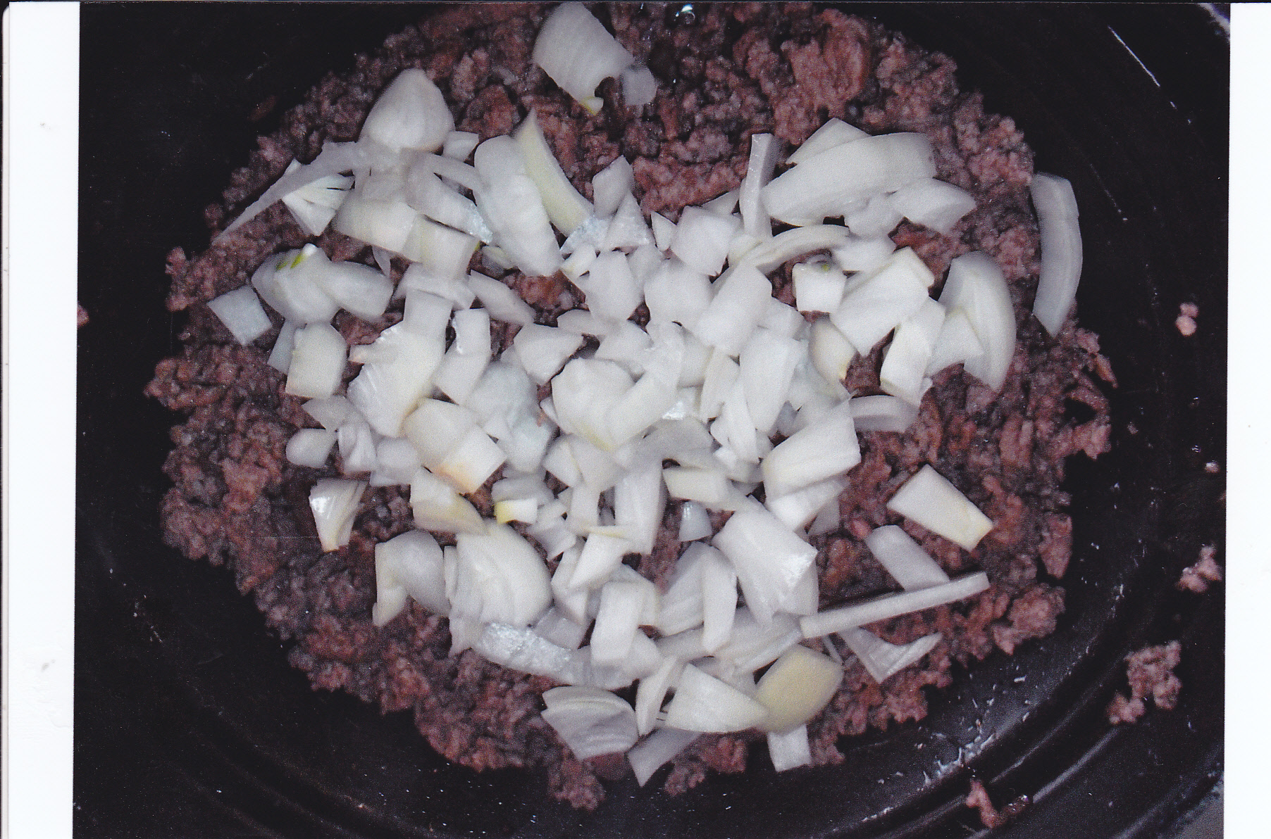 add: 2 lbs. ground meat, fried and drained