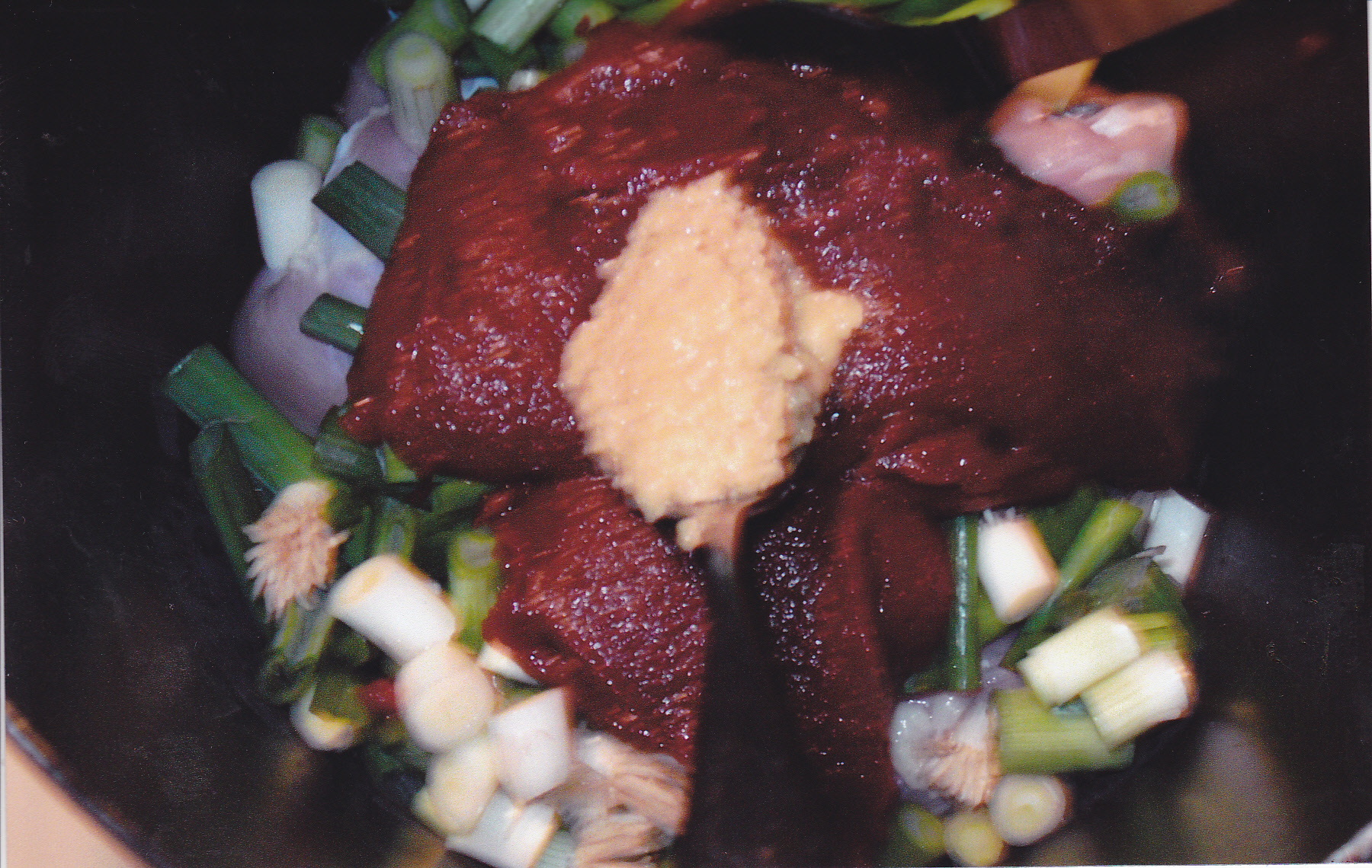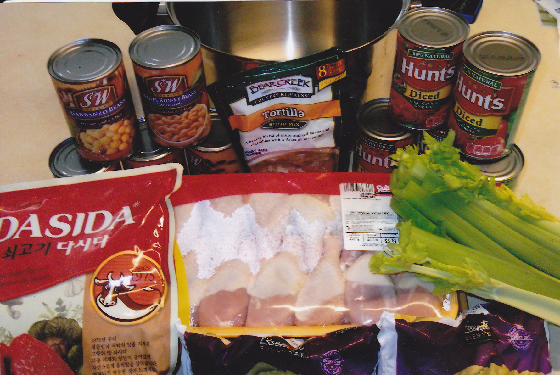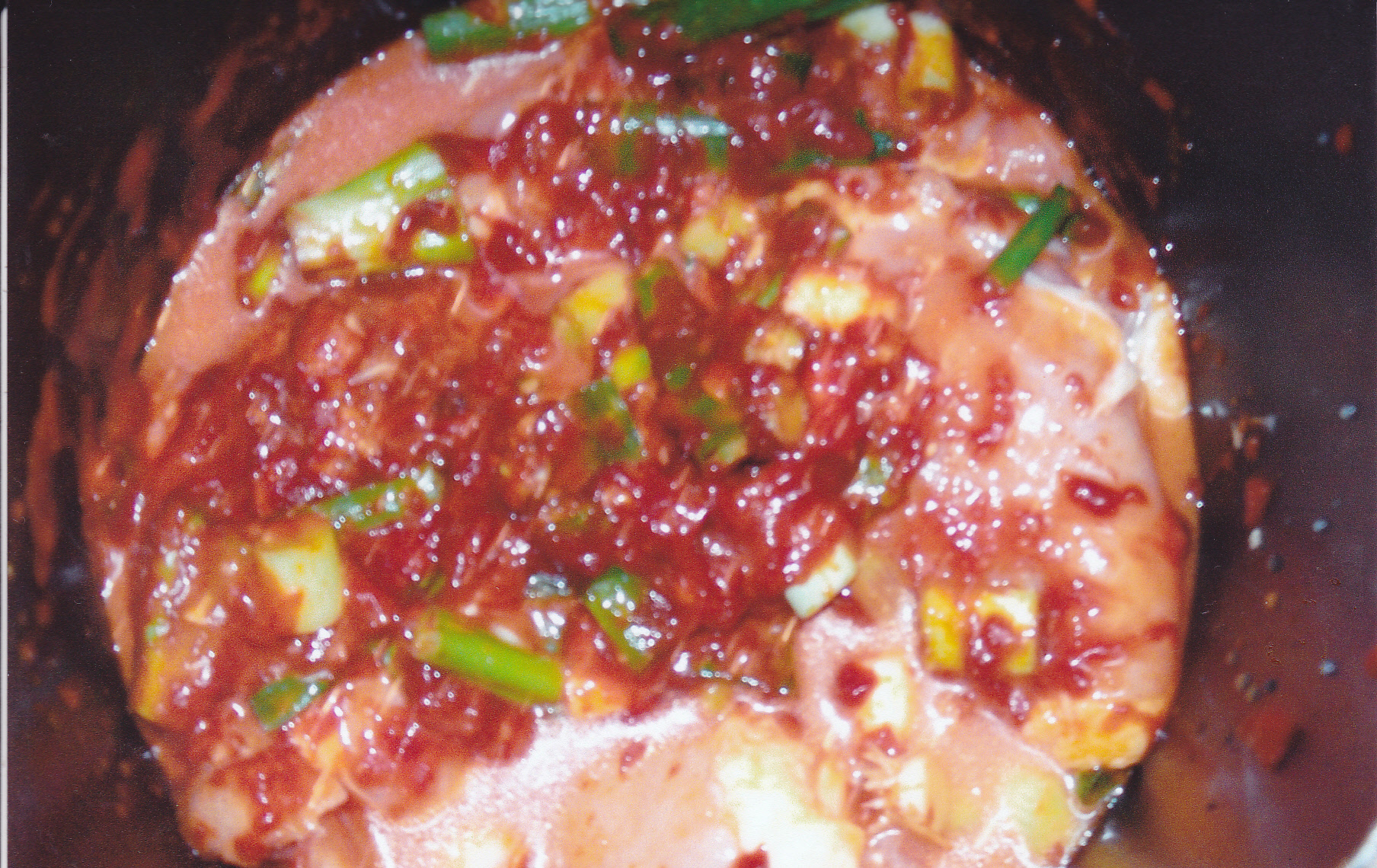The beginning of the cooking process where I add the chicken, garlic and I did add 2 bunches of green onions.