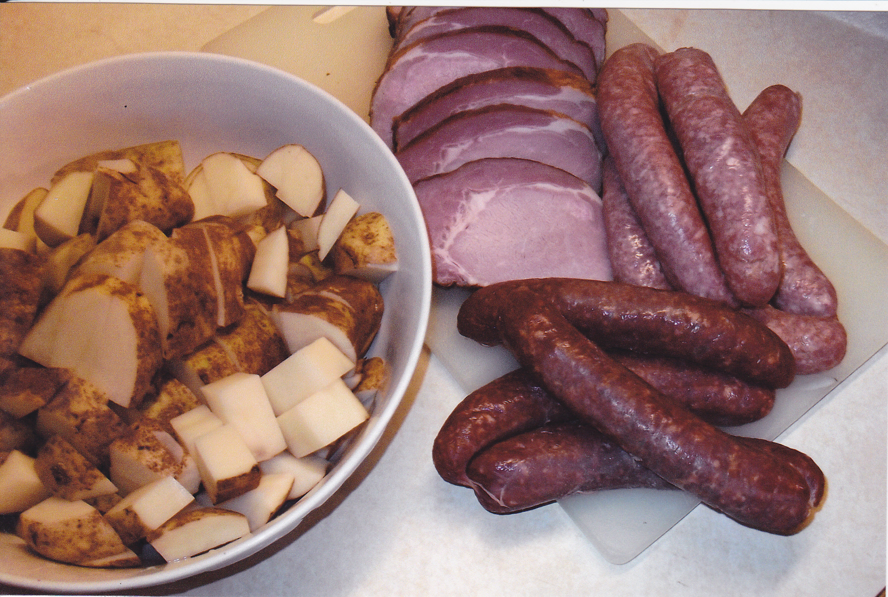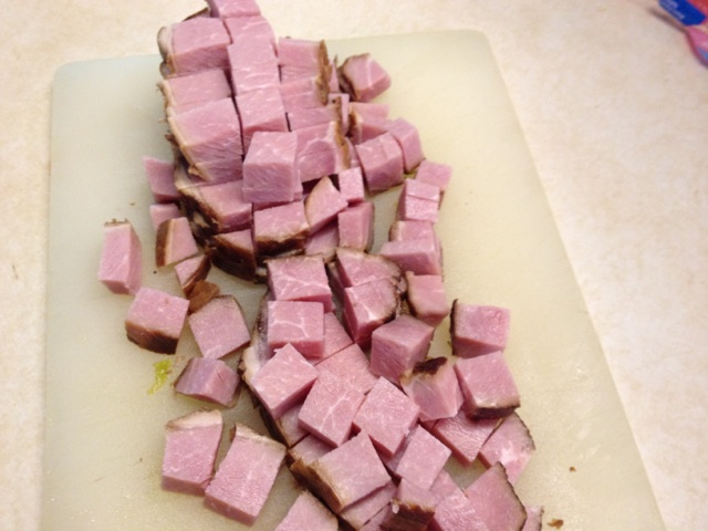 2 lbs. cooked ham [cubed]