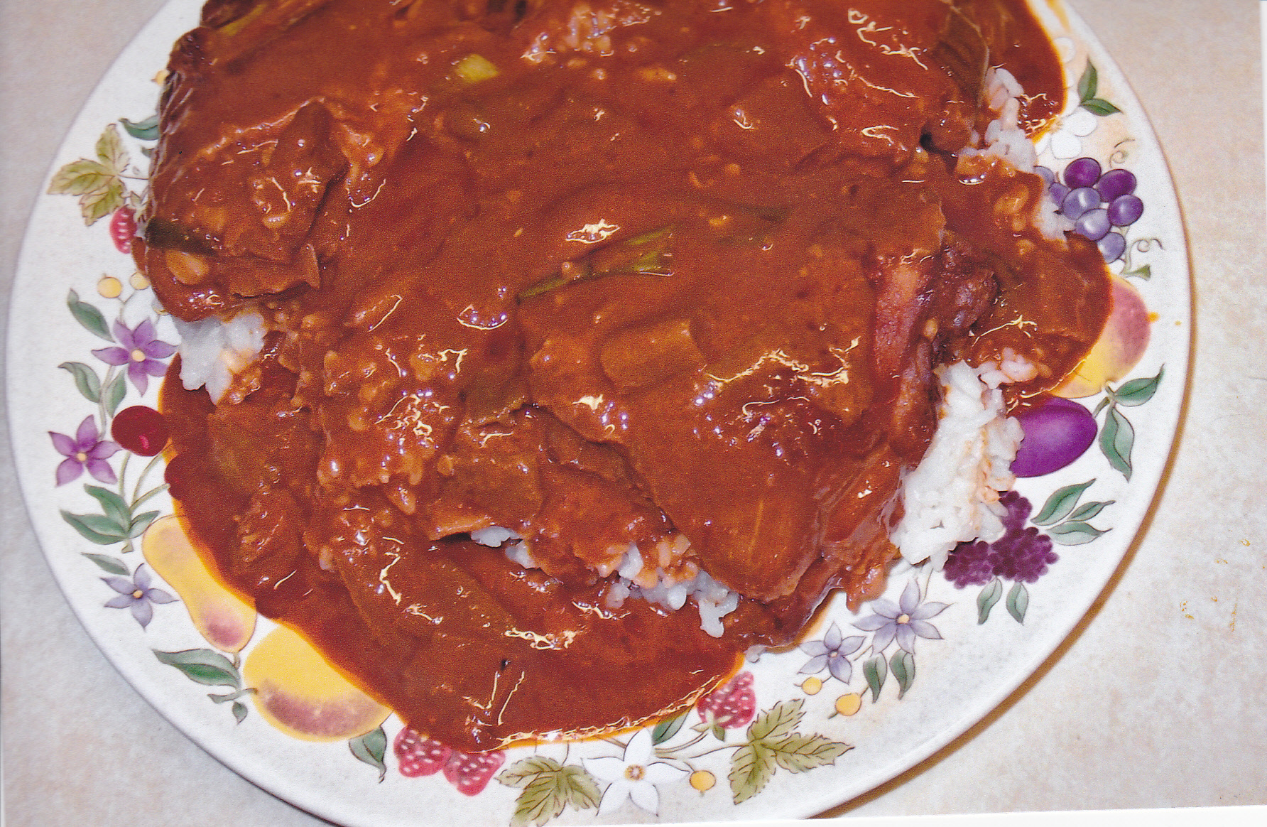 Here is my plate. Served over rice and with some of that good sauce!!!