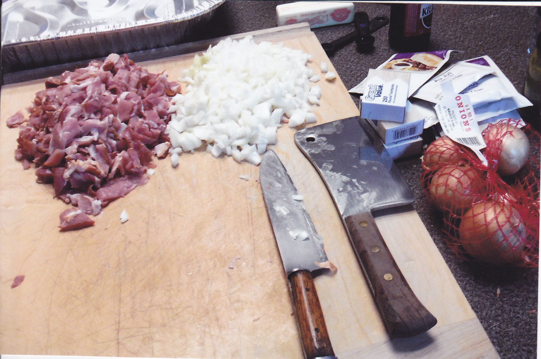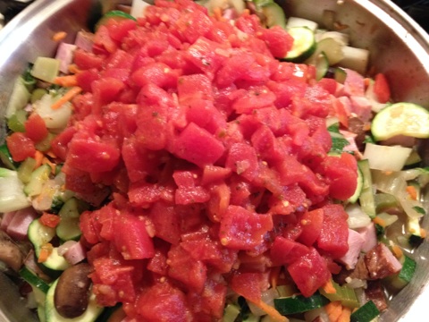 3 ounces of prosciutto, chopped [or use half a pound of chopped ham]