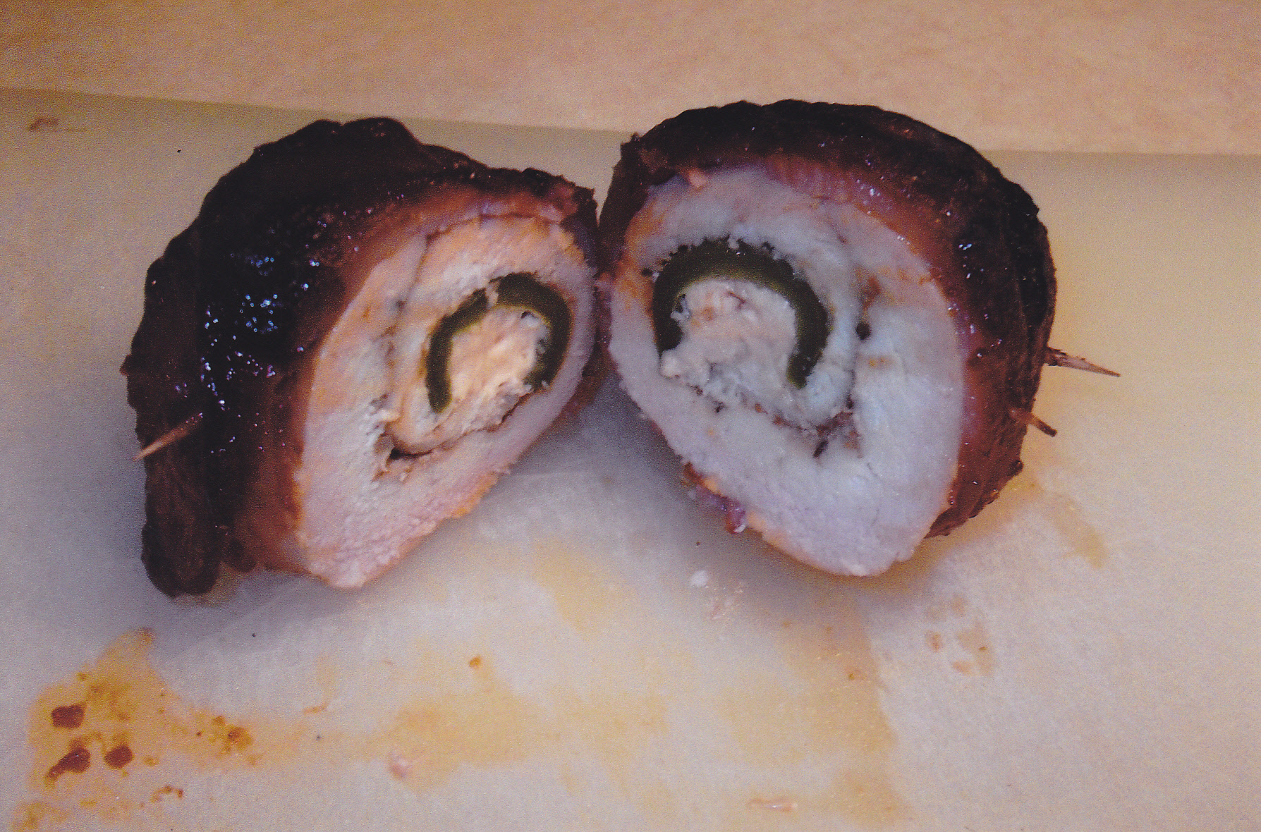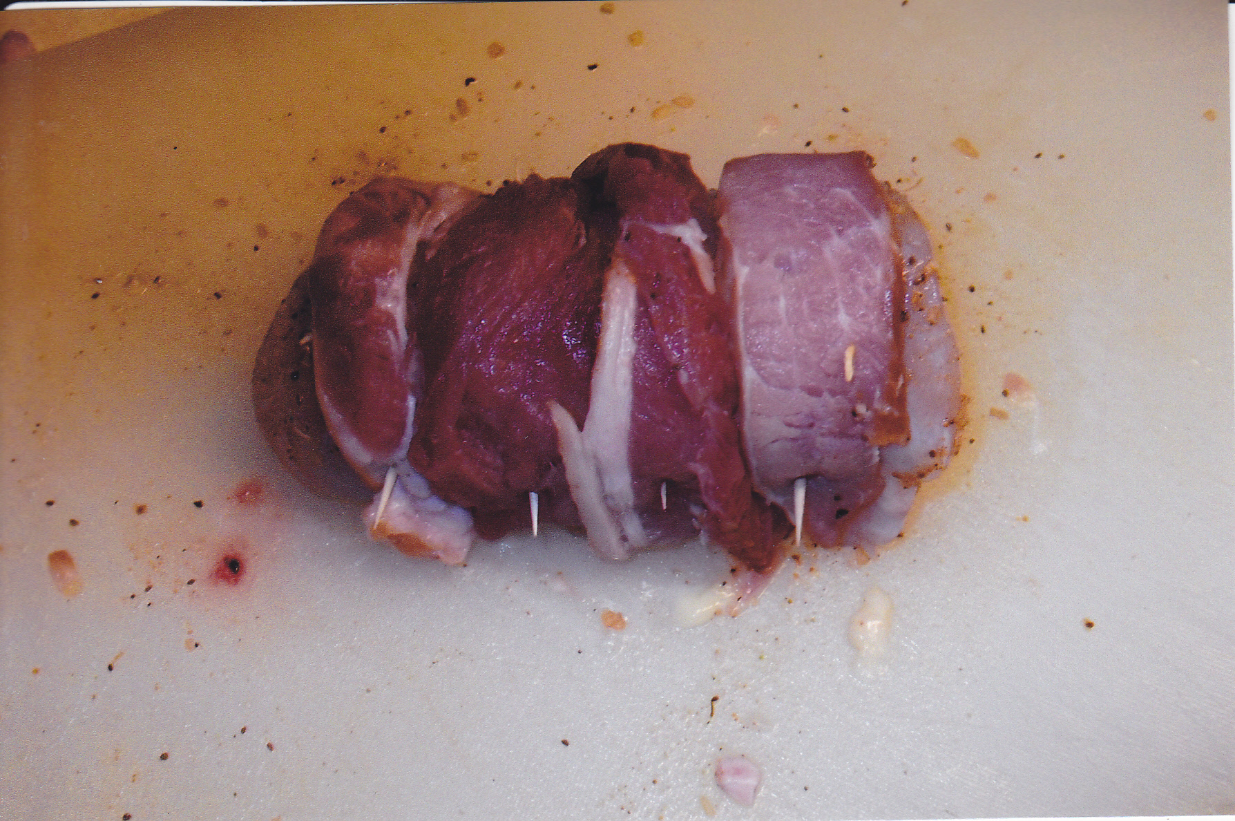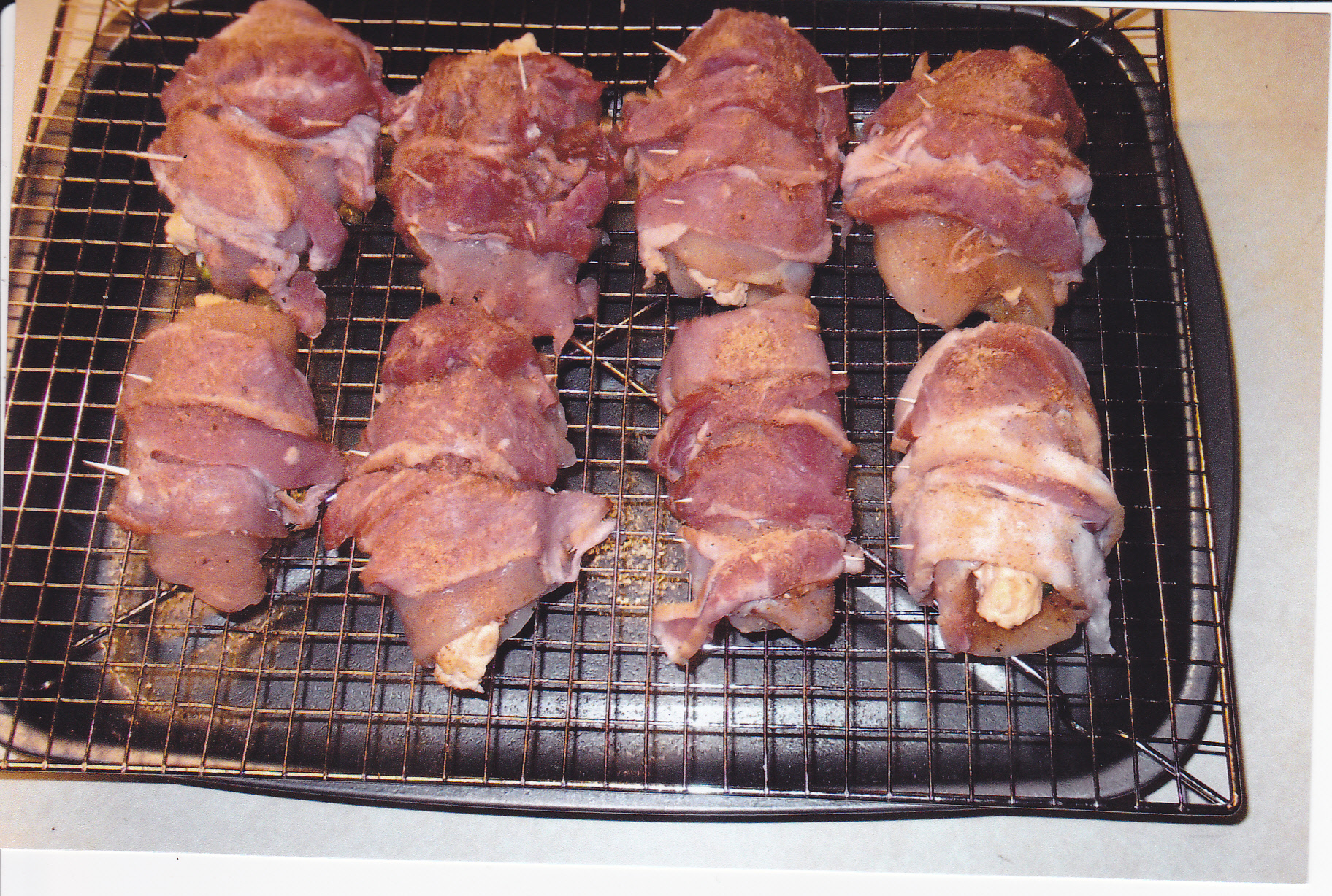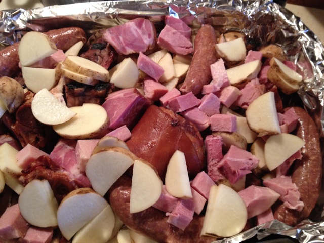 I looked at this recipe and it sure sounded good and I’m sure glad I tried it. It had some interesting ingredients that spelled flavor for me. That’s the first thing I do when I look at a recipe is to check out the ingredients. The recipe calls for prosciutto which I used but for $6.00 for 3 ounces next time I’ll use lean ham instead like the Canadian Bacon I smoke myself. Here is what I used: