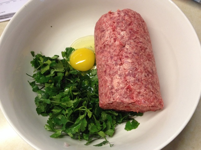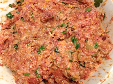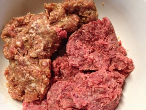 Here is the Italian sausage and the ground chuck in the bowl.