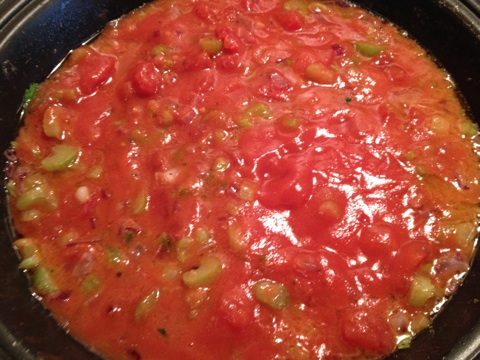 I added the remaining ingredients and let everything simmer while stirring at times. The liquid started to reduce some.