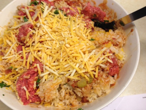 Cover everything with your favorite cheese. I used Mexican shredded cheese.