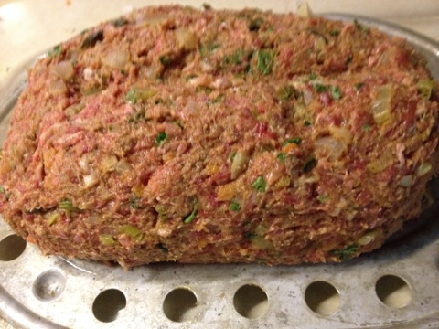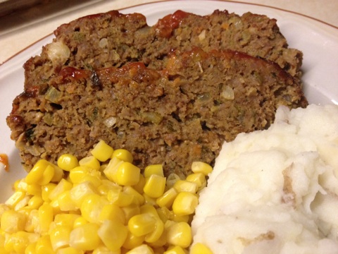 After it’s mixed well, form into a loaf and set it out on the cutting board and form into a nice loaf. I put the loaf on a rack in a baking dish to keep the loaf off the bottom so the grease can drip from the loaf. I put the loaf in the oven at 350 deg until the internal temp reached 150. Then took it out of the oven and covered it with foil and let it rest while I got the rest of the meal ready to serve. I had corn and mashed potatoes with this tasty meat loaf. Here are some pics of the day—-