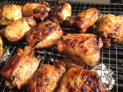 Had the coals ready to go and on the grill the chicken thighs went. Took my time and got some great gill marks on the thighs along with some nice color.