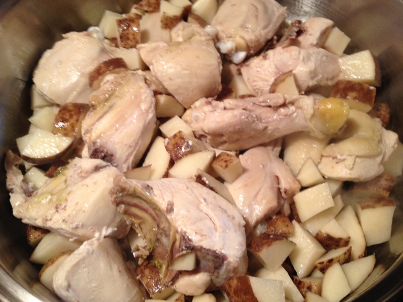 A 4 pound whole chicken cut into pieces [minus the back, which I saved for soup stock].
