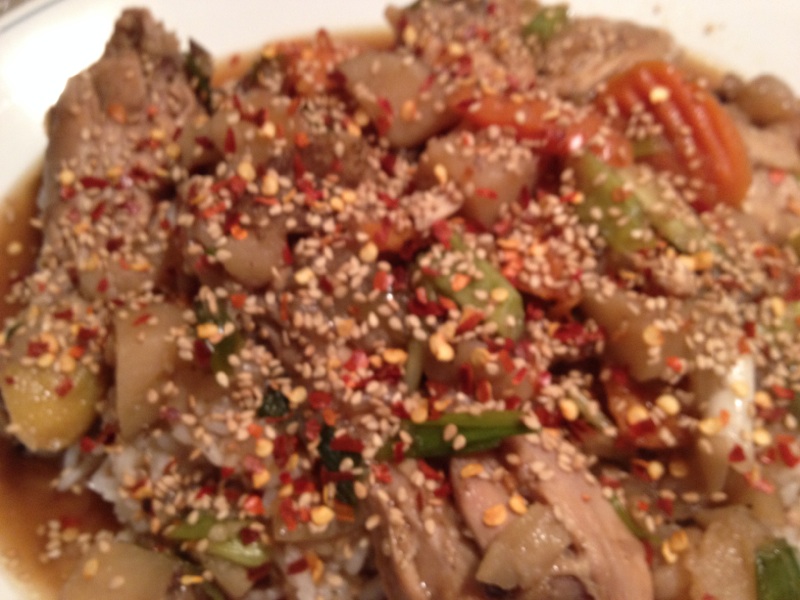 Or in English it is called Braised Chicken with Veggies. This is another tasty Korean dish. This is also the first time I have made it. I followed the recipe closely but i did not add the hot peppers that the recipe called for. I wanted to but my wife and her mom are not into heat as I am. This turned out very tasty. Makes a great broth and is served over rice or rice noodles. Our first servings were over rice and the next day for left overs we had it with the rice noodles. I did add some beef broth to the left overs since there wasn’t enough broth left. Still tasty. Will make this again and again. Here is what I used:
