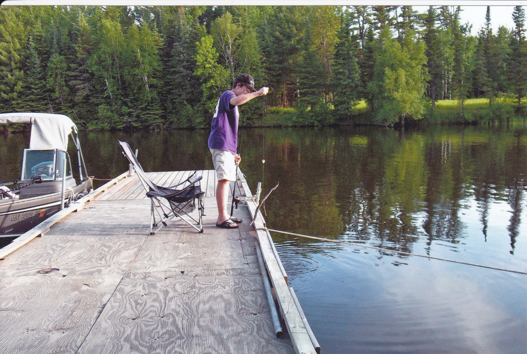 My grandson Tyler ending the day fishing off the dock and taking it easy at the resort.