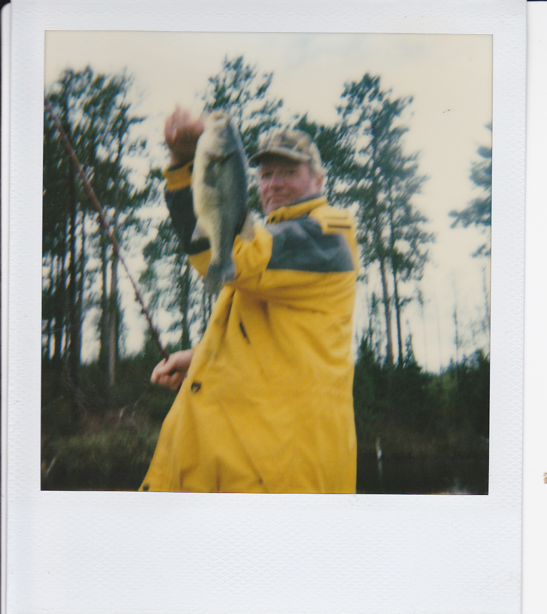 My grandson Tyler holding on to his line with a nice bass on the other end waiting for me to help him.