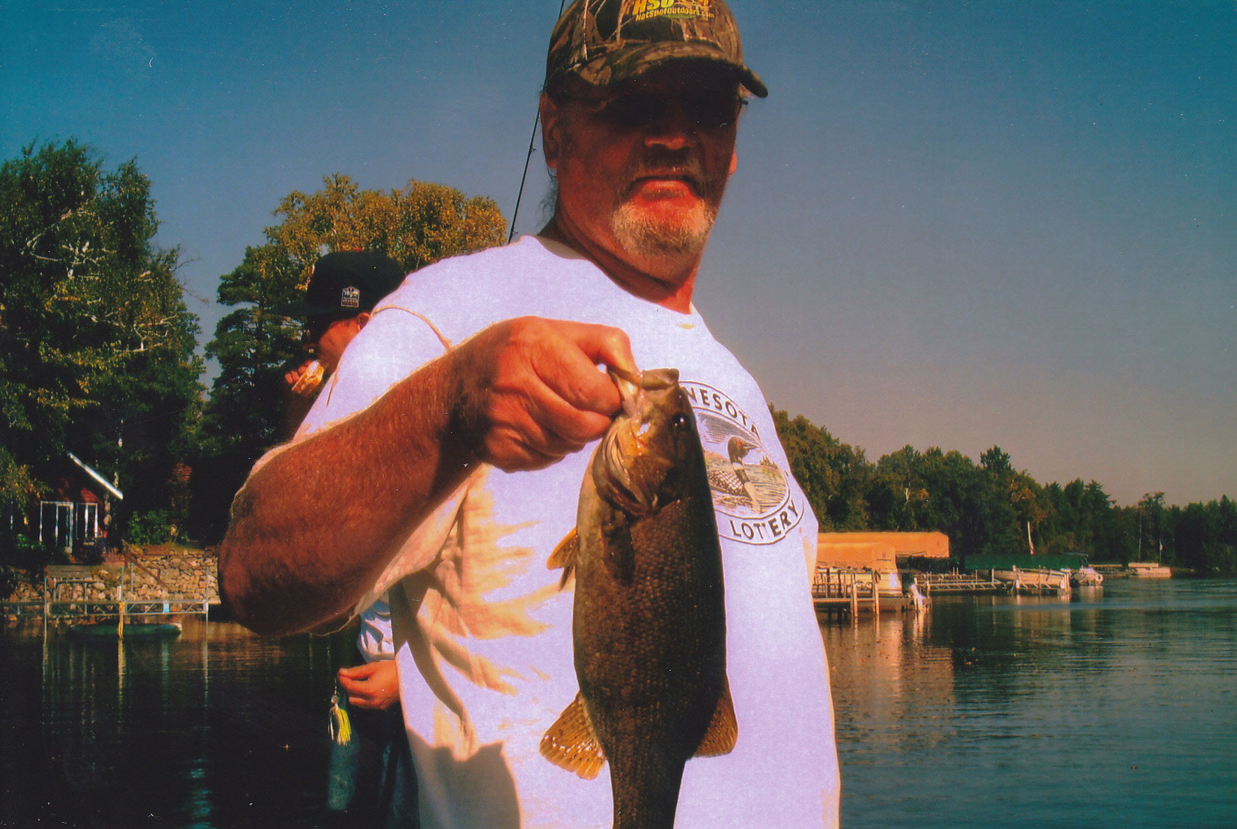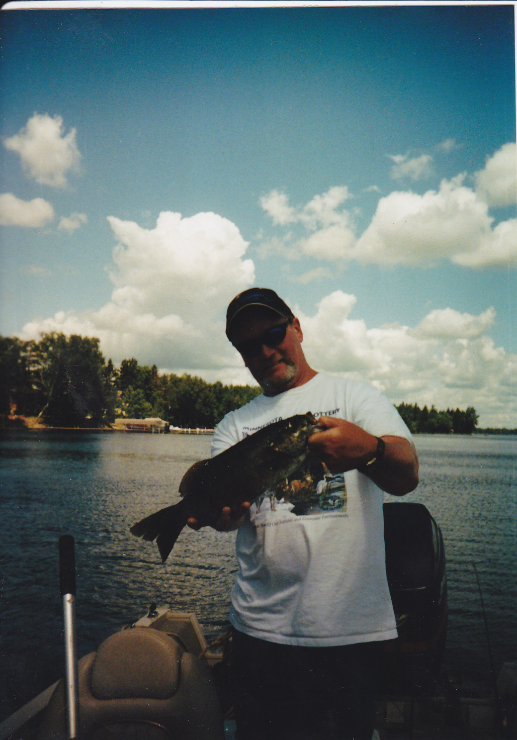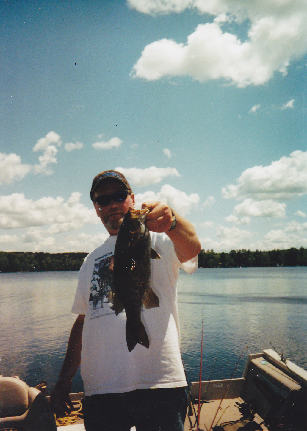 Here I’m holding a nice smallie. Lot’s of sun lotion on this trip. The fish will bite well mid day due to the stained water.