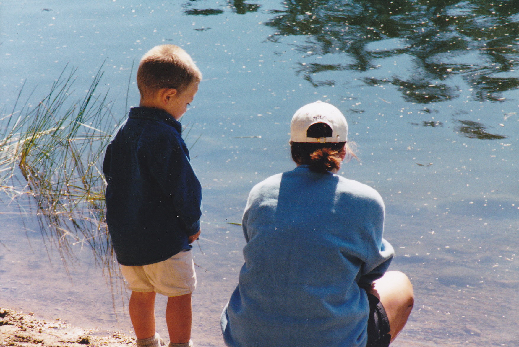 My grandson with his mom checking out small minnows near shore of the trout lake within the park a few years ago.