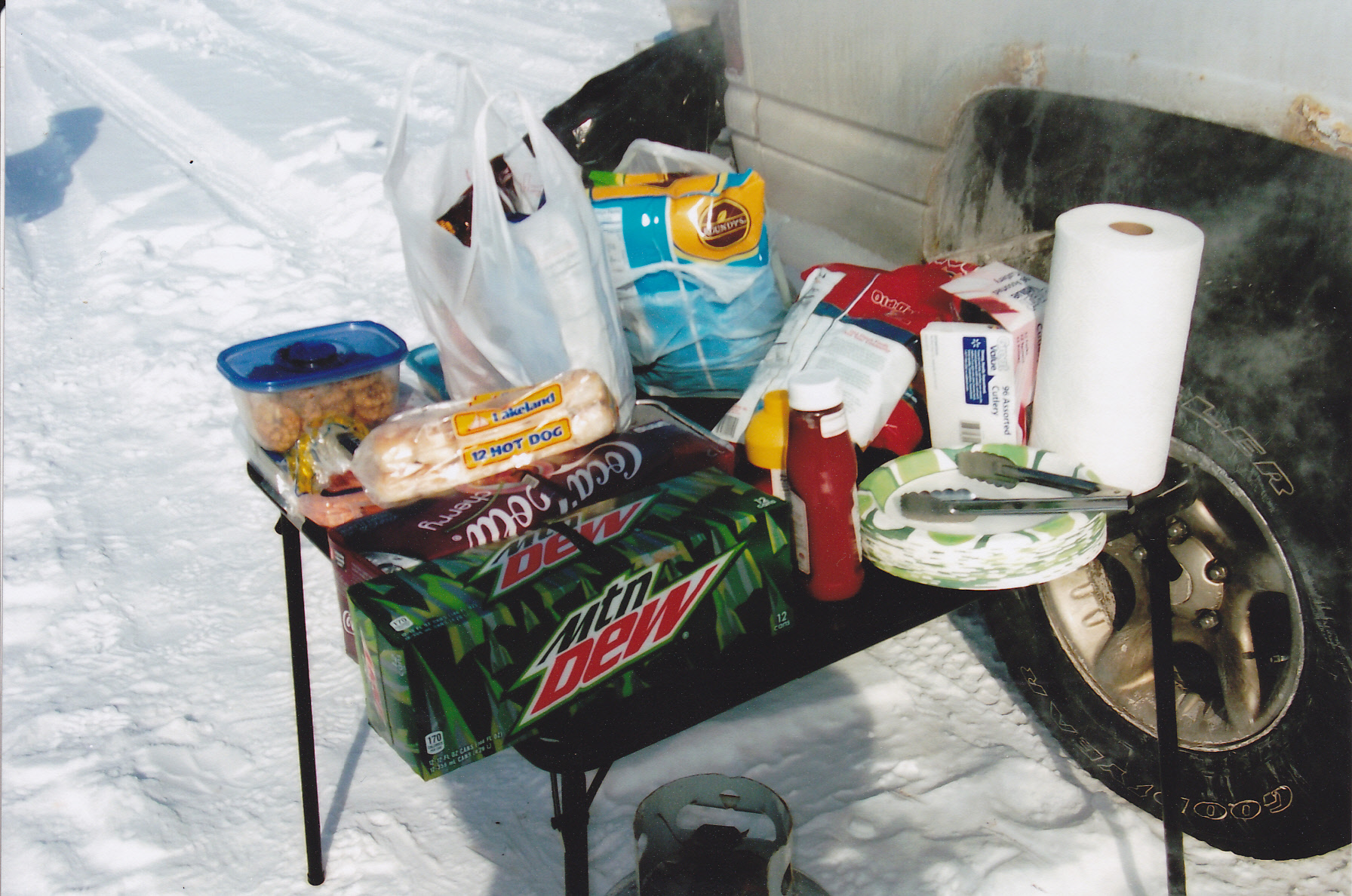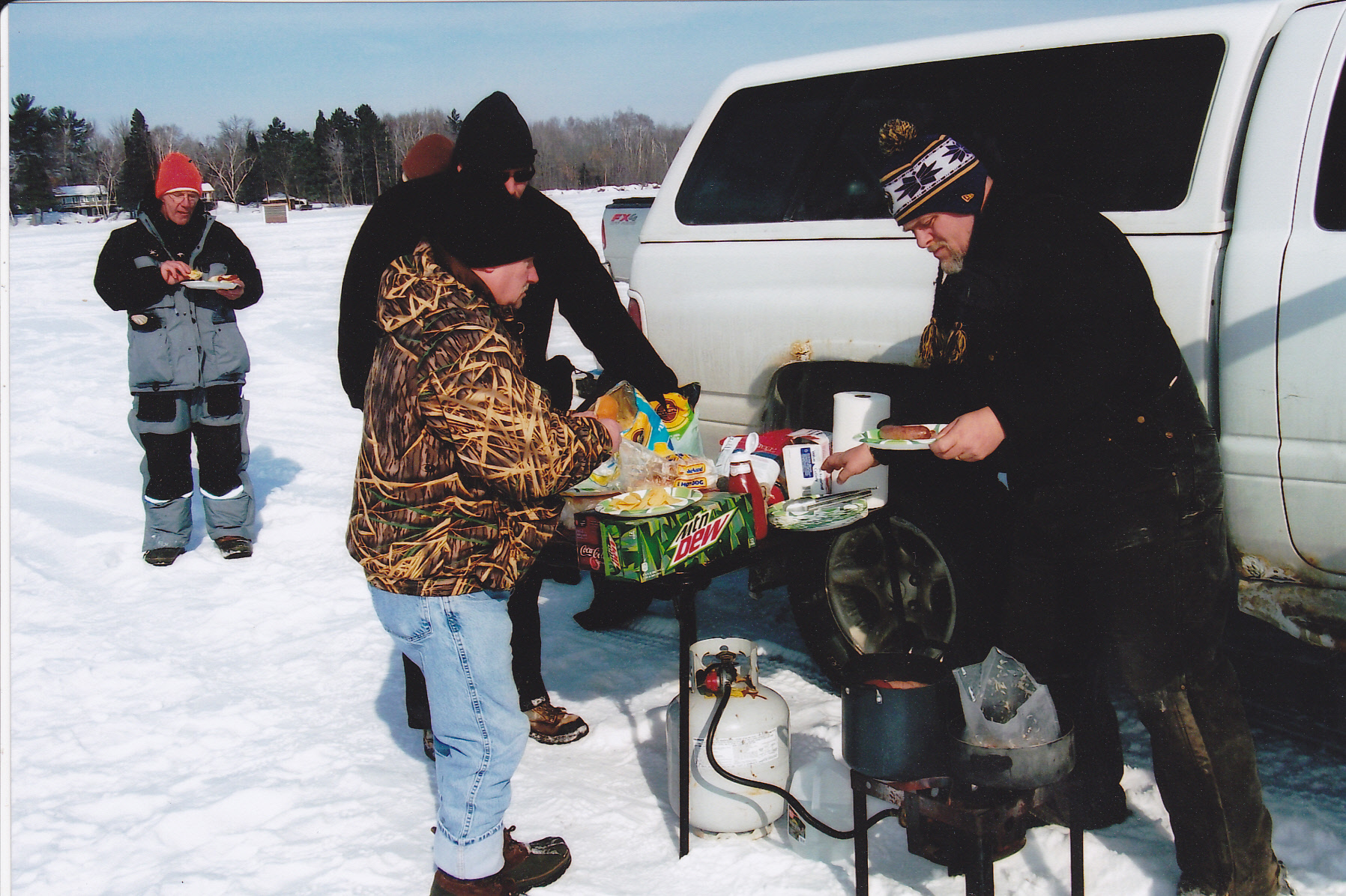 I put on a Grindstone get-to-gether every winter during late January or early February depending on the safe ice conditions. Here are some of my venison chilli franks and old fashion franks simmering for the guy’s. My German kraut with bacon is hot and ready to top the franks for a tasty meal.