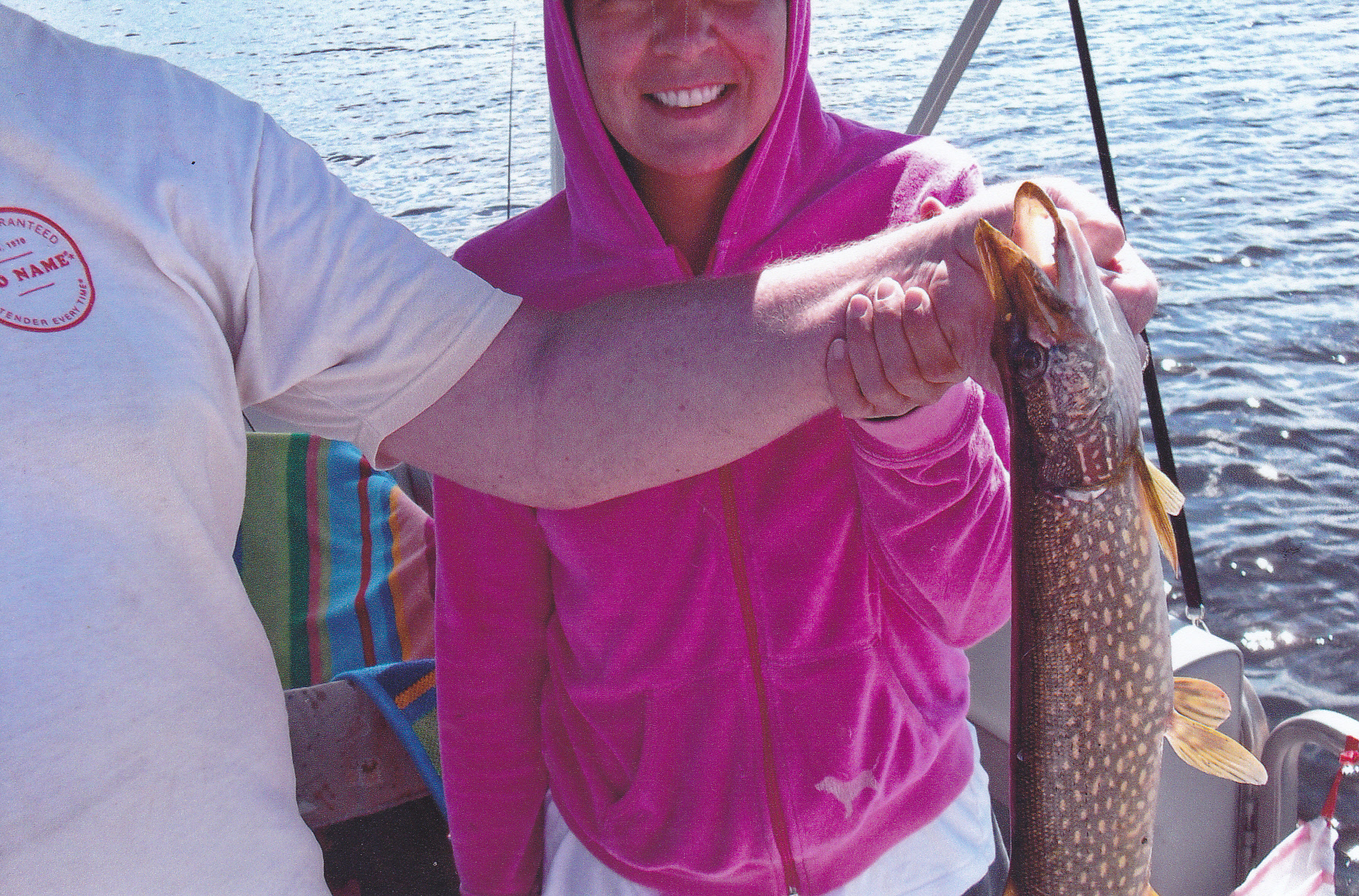 My daughter with a small pike she caught off the dock.