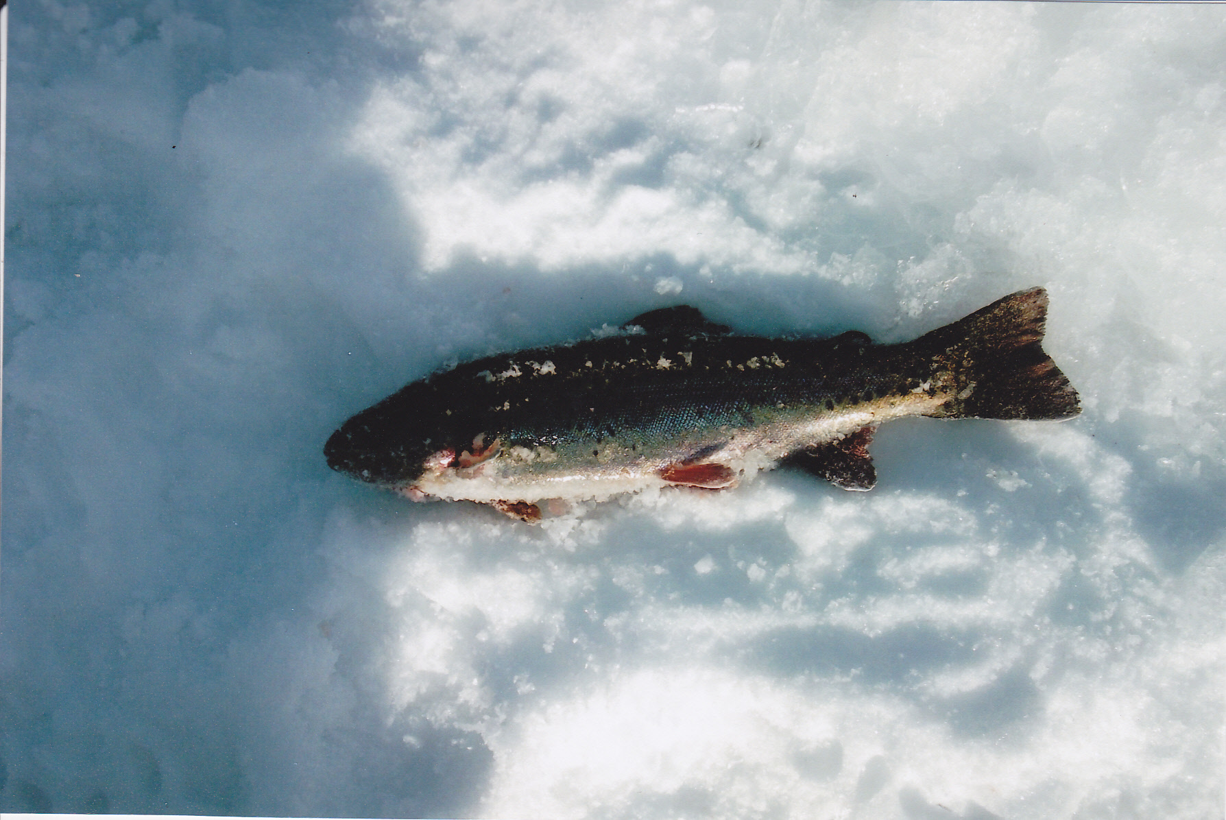 Here is a nice rainbow caught trolling with a small bronze spoon near the surface. This rainbow was probably on it’s second year in the lake after stocking . There is good carry over in this lake which makes rainbows like this plenty tasty.
