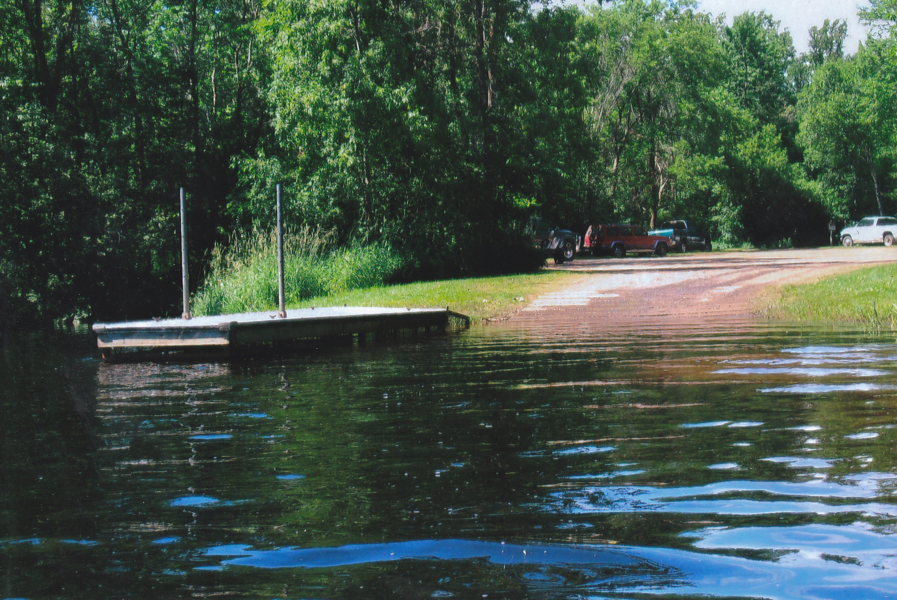 The boat landing is very shallow at times. It has a concrete landing with a dock. Early in the season from May through early July larger boats such as my 1850 Chrestliner can launch there. However after that, it can be difficult to put a larger boat in due to low water conditions from the lack of rain during summer months. There are exceptions but that’s the norm. I have used my 12 foot aluminum boat and my canoe during low water times and have had no problems. There is ample parking at the landing which is all gravel. There is a porta-potty at the landing during the fishing season. Please take your garbage home and keep the landing and the lake clean. Check your boat for weeds and pull your drain plug when leaving.