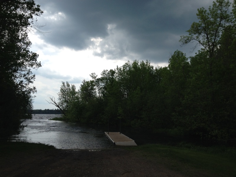 This is what high water at the landing looks like. This pic was taken June 5, 2014. The current of the stream entering the lake was flowing well.